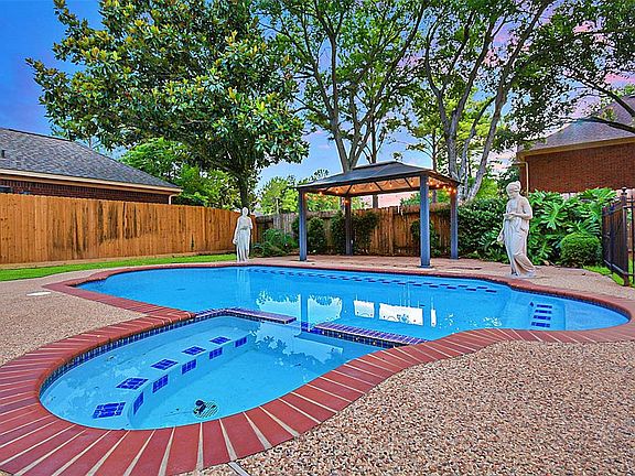 Exceptional home located on a beautifully landscaped lot w/mature trees.Fresh interior paint & carpet! Stunning windows throughout.Charming wood floors carry throughout the first floor.Front formal dining room w/crown & chair rail molding flows effortlessly into the kitchen.Thoughtfully designed kitchen w/5 burner gas cooktop, built in oven, granite counters, adjoining breakfast area, & delightful yard views.Extraordinary family room w/large windows surrounding the gas log fireplace Spacious master suite w/crown molding & ensuite bath w/double sinks,vanity, separate shower, & whirlpool tub. Utility room & half bath completes the downstairs.The upstairs features an impressive gameroom w/wet bar, 4 generously sized secondary bedrooms, Jack n Jill bath, & 2nd full bath.Appealing backyard oasis w/gunite pool & covered pavilion, great for entertaining & relaxing.Neighborhood amenities:tennis court, pool, pavillon, picnic area, & playground.Great location w/ quick access to Highway 6 & I-10.