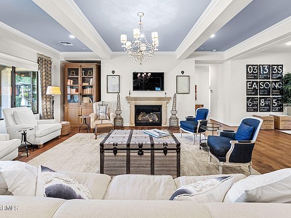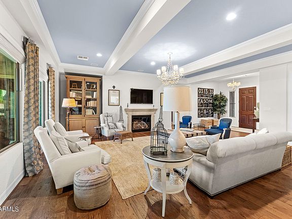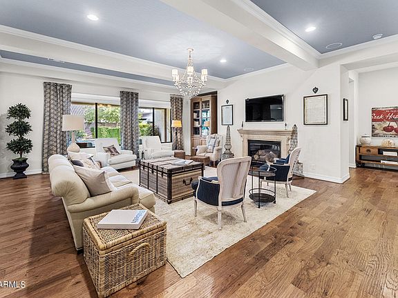 Huge 1/3 acre lot w/heated pool! Magnificent Toll Bro's home nestled in the heart of one of Gilbert's most prestigious areas. Every inch of this exquisite property creates a sense of luxury; from the gated courtyard patio entry (w/ gas fireplace) to the gorgeous hickory floors, to the timeless granite & marble counters, to the crown moulding, soffited & box beamed great room ceiling, this home is unique. The spectacular kitchen boasts massive granite counters, upgraded cabinetry, breakfast bar & extended breakfast room. Gracious formal dining room too! Luxurious owner's suite exudes casual elegance & the extended sq ft creates your own private retreat with a massive walk-in closet. Marble floors & counters, jetted garden tub accentuate the pampered comforts of the owner's bath suite.