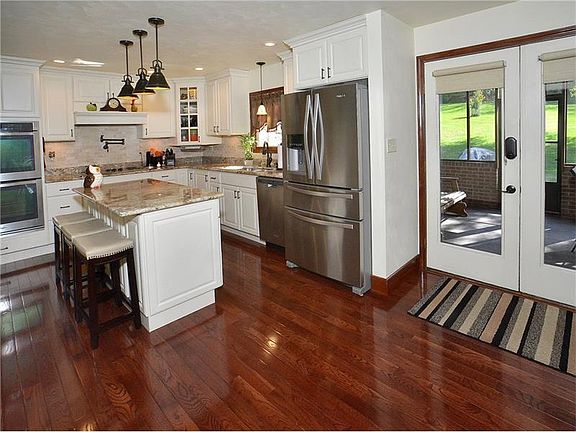NATURE AT ITS BEST...BEAUTIFULLY UPDATED RANCH WITH GLEAMING HARDWOODS IN KITCHEN, DINING ROOM AND HALLWAY...CATHEDRAL CEILING AND CIRCLE TOP WINDOW IN DINING ROOM...NEW KITCHEN WITH GRANITE COUNTER TOPS, SUBWAY TILE, CENTER ISLAND WITH PENDANT LIGHTING, STAINLESS STEEL APPLIANCES AND PANTRY...THE LIVING ROOM OFFERS A SKYLIGHT AND ADDITIONAL WINDOWS FOR AN ABUNDANCE OF NATURAL LIGHTING...MASTER BEDROOM OFFERS TWO CLOSETS IN ADDITION TO THE WALK-IN...JETTED TUB WITH CERAMIC SURROUND AND SEPARATE SHOWER...UPDATED MAIN BATH WITH GRANITE TOP VANITY... 3 ADDITIONAL BEDROOMS COMPLETE THE FIRST FLOOR...THE LOWER LEVEL OFFERS A FAMILY ROOM WITH WET BAR AND PELLET STOVE... EXPANSIVE GAME ROOM...A WORK SHOP FOR THE HOBBYIST...FULL BATH AND ADDITIONAL LAUNDRY ROOM...A 20 X 12 COVERED BACK PORCH OVERLOOKS THE PRIVATE BACK YARD...THE DETACHED GARAGE HAS A WALK UP ROOM FOR ADDITIONAL STORAGE...