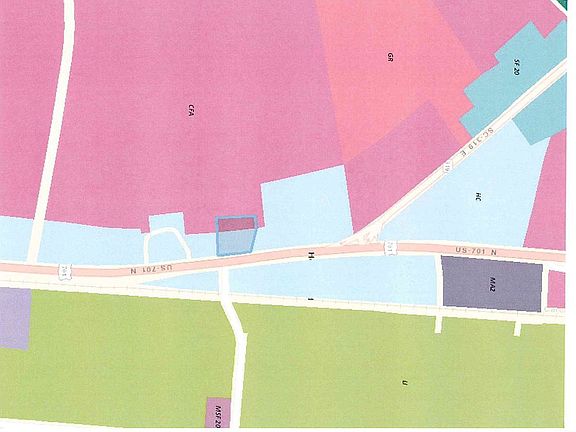 Great Commercial Lot on the highly developed 701 North corridor. Excellent Frontage, visibility, egress, and ingress. A combination of HC and CFA zoning. High traffic count 22,200 VPD (SC DOT) Located at the intersection of Hwy 701 and Hwy 319. Mobile home on the lot has mold and mildew and is sold As IS/ Where IS.