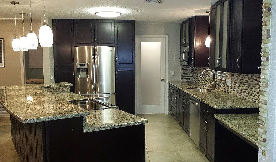 Stunning and turn key! This open concept 3 bedroom, 2 bathroom, has been beautifully remodeled and is nestled on a spring-fed pond near McKay Creek and located 5 minutes to the world famous quaint beach community of IRB! French doors lead you into the great room with expansive waterfront views and endless options for furniture arrangements. The floorplan flows effortlessly with 16 inch porcelain tile through most of the home. Updates at every turn with recessed can lighting, new ceiling fans, upgraded electric, and windows that have been upgraded to double pane low-emissivity. The kitchen has been completely renovated with shaker cabinetry, soft-close doors, high end granite countertops, and all stainless steel appliances. The Island is elegant and accommodating with front and back storage. The inside utility room is just off the kitchen with washer/dryer hookups, a garden tub, and extra storage making daily chores a breeze. There is a separate formal dining area and an expansive great room with built-in surround sound. Perfect for multi-generational living and guests alike, the split floor-plan gives everyone their own privacy with two of the three rooms overlooking the water. Pocket sliders allow you to completely open up the space creating a refreshing cross breeze. The large lanai is screened-in, cable-connected and ready for those summer get togethers and game days. The back patio plays host to a brand new built-in grill station complete with a granite counter and space for a large outdoor table. The backyard is fully fenced with lush tropical landscaping and pond/well water for irrigation. Storage and space abound on this unique property with a new circular driveway, new dedicated rv/boat parking pad behind vinyl fencing, 2 car garage, new storage shed, and separate fenced in dog-run. This home has the ideal location with just a short bike/jog to the beach, various parks, boat launches, fishing piers, and high end local shopping and dining.