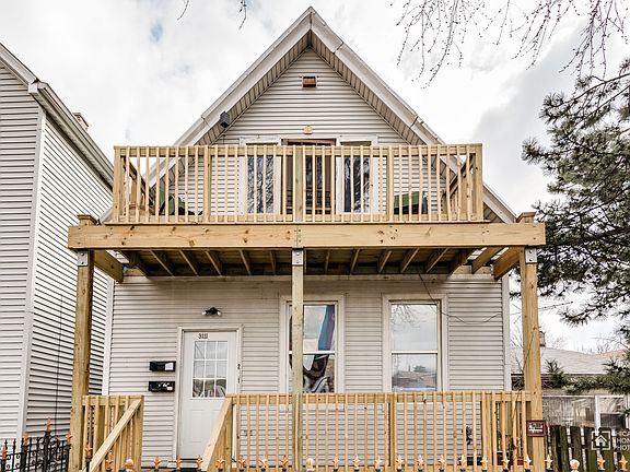 Legal two flat in prime Roscoe Village location! First floor unit with 2 bedrooms, 2 baths, duplexed down to semi-finished basement, front porch, large kitchen, hardwood floors, replacement windows and more. Second floor unit is bright and sunny, has 1 bedroom plus office/den, large living room, eat in kitchen and front wooden deck. Laundry room and storage in basement. Appliances have been removed. This property could be used as is, could be converted to single family home or torn down for new construction. Close to transportation, stores and restaurants. Fenced back yard, with patio. Detached 2 car garage. Excellent opportunity to own in one of the hottest areas of the north side of Chicago. See "Additional Information" for zoning cert, floor plans and disclosures.