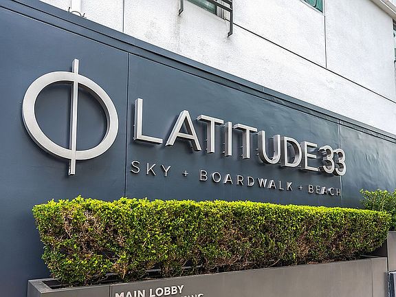Highly sought after unit in the prestigious Latitude 33 Sky Collection. This south facing light filled 2-bedroom, 2.5 bathroom boasts an open floorplan with nearly 10 foot ceilings, floor to ceiling walls of glass, designer finishes, recessed lighting, and wood floors throughout. A chef's kitchen boasts Wolf and SubZero appliances, wine fridge, large breakfast bar/island , custom cabinets, granite counter-tops and an adjacent dining area. The well-appointed primary suite offers an en-suite spa-like bathroom with separate tub and shower, and an expansive walk-in closet with custom built-ins. This unit also includes a large in-unit laundry room, central air/heat and two parking spaces. Building amenities include concierge/doorman, controlled access, security guard, guest parking and private gym. Feel worlds away while enjoying the conveniences of Westside living in this luxurious beach retreat! Centrally located to everything the Westside has to offer, this home is just minutes to world class restaurants, shopping, nightlife, and the beach.