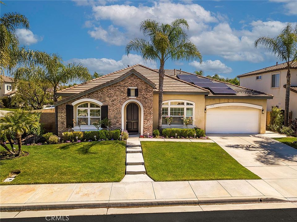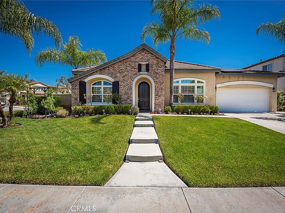 Boom! Just came back on the market for those of you who missed out! Welcome to your exquisite single-story pool home. It is a perfect blend of charm and luxurious living, located in the highly sought-after Wolf Creek neighborhood. This beautiful home boasts an array of features and upgrades. As you step through the curved archway door, you're engulfed with a sense of tranquility. You will enjoy the convenience and comfort of one-story living at its finest, with every detail meticulously crafted to offer the utmost in elegance. The entryway sets the tone for the home, with its welcoming natural light ambiance and stunning large tile flooring, with tumbled marble inlay, leading you gracefully into the spacious living and dining areas. have I already mentioned the gourmet kitchen. It is a culinary paradise equipped with top-of-the-line appliances, natural cherry cabinets, and sleek solid granite countertops. Entertain with ease and pride in this chef's haven as you host lavish dinner parties or enjoying casual meals in the cozy breakfast nook. The spacious family room includes an inviting fireplace, creating the perfect ambiance for intimate gatherings or private relaxation. Revel in the macchiato pecan hardwood flooring that adds a touch of sophistication. When you retreat to the Primary Suite, luxury awaits you with two walk-in closets, a large soaking tub in the primary bath adorned with exquisite travertine flooring. Step outside to your private oasis and marvel at the breathtaking and often sight of hot air balloons drifting across the sky as you sip your morning coffee on the patio, overlooking the sparkling pool and spa. The meticulously landscaped backyard boasts seven fruit trees, adding color and flavor to your surroundings. A custom pool deck and elegant stone walls provide additional seating and create the perfect setting for outdoor entertainment. The backyard is complemented by the convenience of a low-maintenance alumawood patio cover. With four spacious bedrooms, a den/office, and a generously sized laundry room, this home offers ample space for both relaxation and productivity. The rare corner lot ensures privacy and space to roam, while the convenient location provides easy access to freeways, shopping, top-rated schools, and parks, making it an ideal choice. Don't miss the opportunity to make this exquisite residence your own solar powered personal paradise. Schedule your viewing today and dont miss out on a second opportunity!
