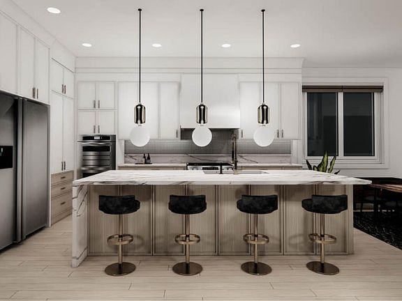 This walkout design offers 4 bedrooms, 3.5 bathrooms, a private home office, and double patios — one extending far enough to enjoy sweeping views of Shaganappi Golf Course and the downtown skyline. Inside, thoughtful details abound: air conditioning, heated floors in the primary ensuite, a Wolf gas range, an oversized refrigerator, a custom hood-fan canopy, a waterfall island, 9-foot doors, and high-end finishes that flow seamlessly throughout.