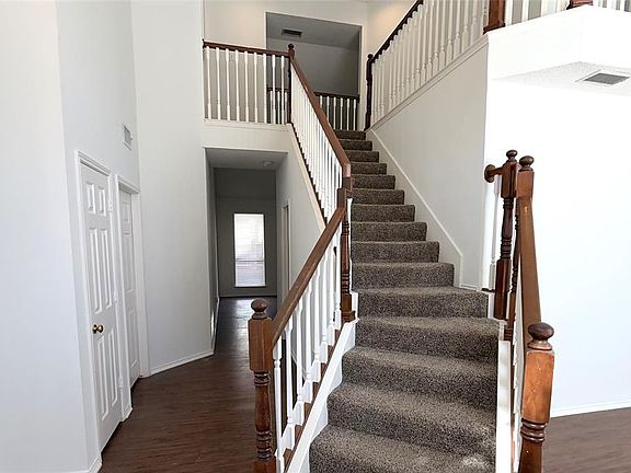 Welcome to this elegant two-story brick home that perfectly blends style and comfort! Featuring 3 bedrooms, 2.5 baths, and a two-car garage, this home offers high ceilings, lots of natural light, and plenty of space with two living areas and two dining areas. All bedrooms are upstairs, including a stunning owner's suite with a cozy side area, perfect for a home office, reading nook, or TV lounge. Enjoy the outdoors with a covered back porch, fenced backyard, and a beautiful shade tree, plus a peaceful walking trail right behind the property. Comes with all appliances, including refrigerator, washer, and dryer, move-in ready and waiting for you! Experience comfort, space, and charm all in one beautiful home. All occupants aged 18 and over must complete the lease application; the fee is $65 per application. Credit, employment, criminal background, and rental history will be verified.
