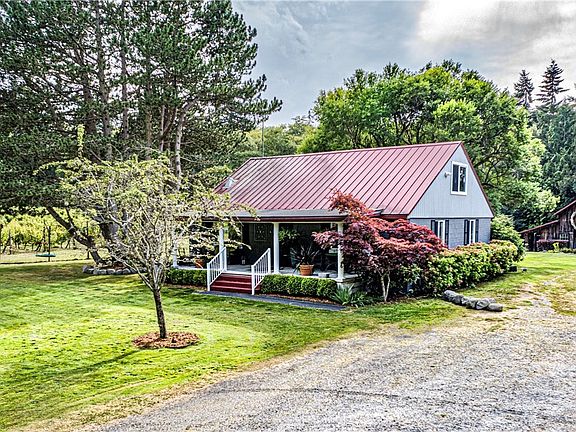 Opportunities abound w/ this special property in popular Greenbank area of Whidbey Island! Historic uses have been as a hobby farm & winery/art gallery. This unique property has a charming farmhouse w/ pizza oven, separate bldg with sleeping area, a restored 100+ yr old barn w/ tasting & barrel rm, a small warehouse, climate controlled production bldg & garage w/ phase 3 power. Approx. 3 acres of grapes in fenced vineyard, extensive raised-bed garden & mature orchard. Wine making equip conveys.