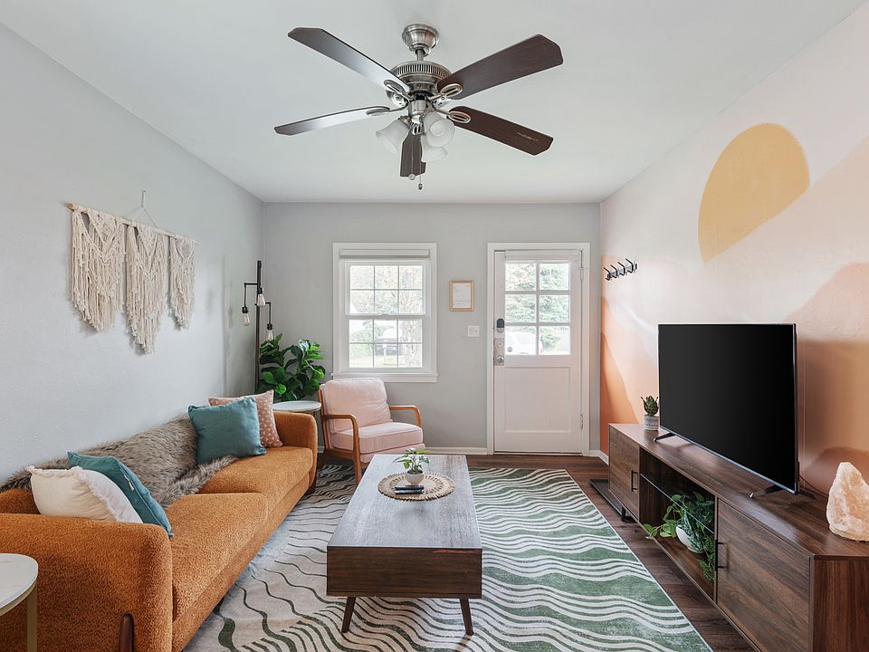 Cozy fully furnished apartmentHigh speed wifiOne queen bedIn unit laundryFenced backyardSmart lock entryLarge smart tv
