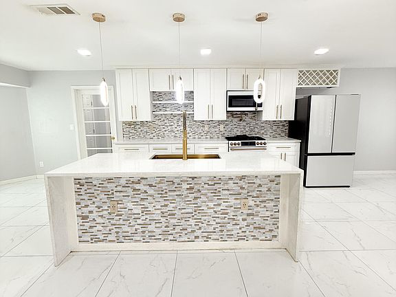 /Back Yards. Features large open living areas. Adjacent to the living room is a large sun room, perfect for entertaining guests or relaxing. The backyard features plenty of shade and with room for patio furniture under the covered patio and ample space for pets. Located near the intersection of Pebble Hills Blvd and N Yarbrough Dr, this home provides easy access to Fort Bliss, El Paso International Airport, and Montana Ave.