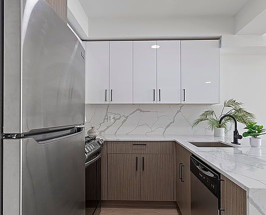 The open-concept living and dining space is filled with natural light and complemented by sleek finishes throughout. The chef’s kitchen is outfitted with premium stainless-steel appliances, custom cabinetry, and stone countertops — perfect for both daily living and entertaining. A washer and dryer are conveniently located in-unit for added ease. The spacious bedroom offers a peaceful retreat with generous closet space, while the beautifully appointed bathroom features spa-like finishes and designer fixtures.
