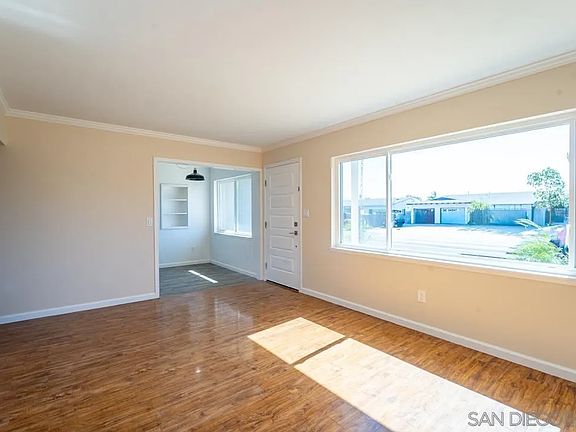Welcome to the sought- after neighborhood of Northwest Clairemont. This move in ready home features 3 bedrooms 1 bath, 900Sft. Kitchen features a modern clean style, includes granite countertops, new quarts sink, tile flooring. Plenty of kitchen storage with a bonus pantry. Upgrades include new sustainable landscaping in the front yard, new restroom vanity, new carpet in two bedrooms, fresh new paint inside. Some Key features, forced air conditioning/heater which is great for those summer months and winter days. Beautiful crown molding. What sets this home apart is the additional bonus room 12x12.(not included in sqft) offers a versatile space with plenty of natural light. The spacious backyard offers a fence yard and is ready for you to design your backyard retreat. Conveniently located near freeways 52, 5, 805. Just minutes from UTC, La Jolla, Torrey Pines, Mission Beach, Downtown, shops. schools. This is a 1031 exchange at not cost to buyer.