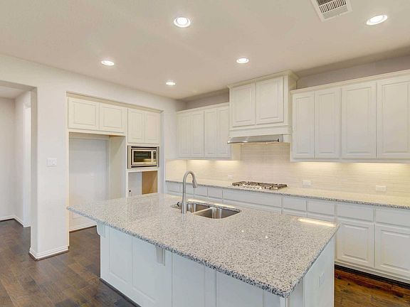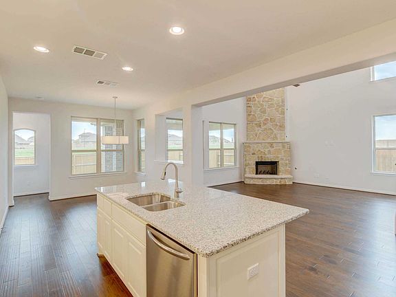 This spacious 2 story home with stone/brick elevation sits on a 70' wide lot with no neighbors behind. Home features wood flooring, fireplace and an extended outdoor living area with gas drop. Kitchen features stainless steel appliances, granite countertops, and more. Game room, 2 beds and 2 baths are on second floor. Full sod and sprinkler system included!