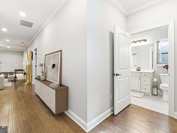 Gorgeous 3 Bedroom, 3 Bath Craftsman-Style Stepless Ranch in a Sought-After 55+ Gated Community! Welcome to easy, elegant living in this beautifully maintained Craftsman-style home located in one of Powder Springs' most desirable active-adult communities. Enjoy unmatched convenience-just minutes from shopping, restaurants, walking trails, Marietta Square, and more! This stunning home features upgraded hardwood floors, crown molding, recessed lighting, and quartz countertops throughout. The bright, open floor plan includes soaring tray ceilings and an inviting fireplace that anchors the spacious living room, creating the perfect setting for relaxation or entertaining. The gourmet kitchen shines with granite countertops, custom cabinetry, a generous island for casual dining, and stainless steel appliances-ideal for everyday living or hosting guests. The Owner's Suite on the main level offers a peaceful retreat with direct access to a large enclosed sunroom, perfect for morning coffee, reading your favorite book, or enjoying visits with family and friends. The spa-like owner's bath features a large custom-tiled walk-in shower with a built-in seat and grab bars, along with a beautifully organized California custom closet. Two additional spacious bedrooms and a full bath complete the main level. Upstairs, a private finished bonus room with its own full bath offers wonderful flexibility-ideal as a guest suite, media room, office, or hobby space-plus plenty of storage. The community includes a quiet, tucked-away clubhouse, offering a peaceful place to gather and enjoy neighborhood activities. This home blends comfort, style, and low-maintenance living-perfect for those ready to embrace the best of 55+ living!