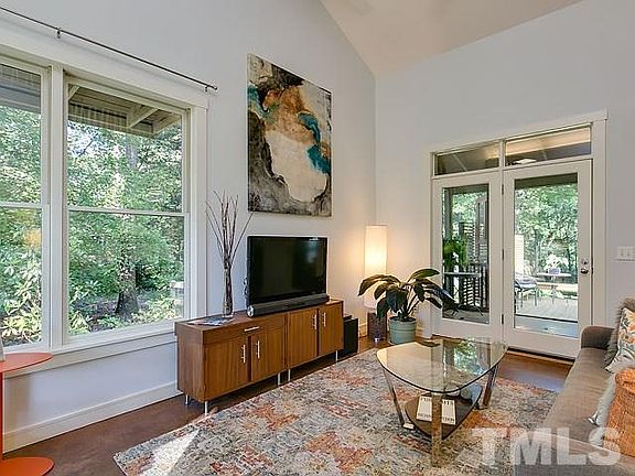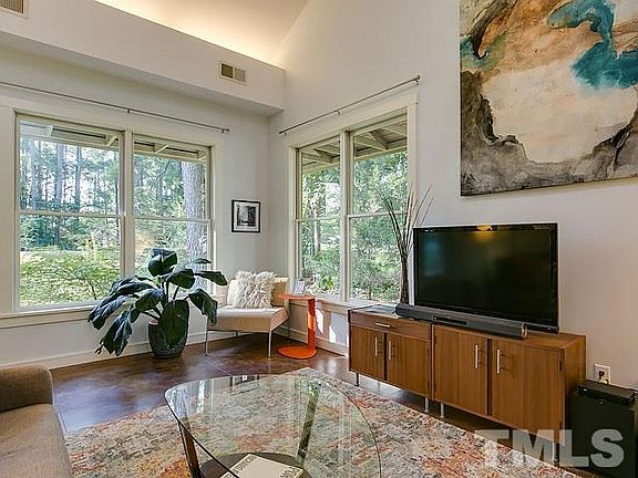 Come and roost on Ridge! Architecturally designed by Scott Neeley ,this 2BR, 2BA modern farmhouse offers loads of character and a stunning style! From the soaring vaulted ceilings, cozy upper level loft and beautifully appointed kitchen, this home delivers! Passive solar elements include lower level concrete flooring and oversized windows. Situated on .6 acre, this lovely piece of property offers ample space for gardens, kids and pets! Screen porch & massive deck - entertain! Convenient to Duke & UNC.