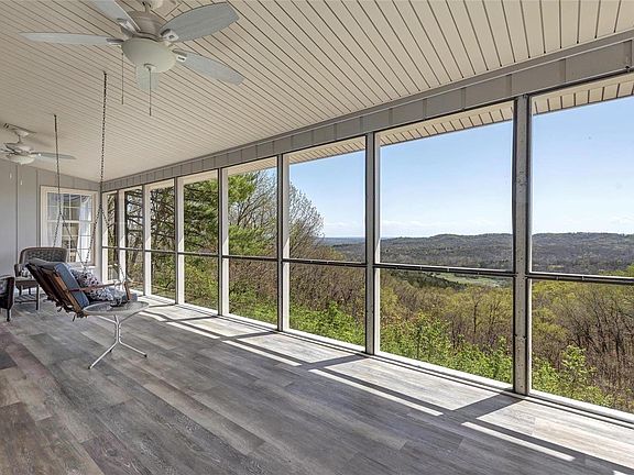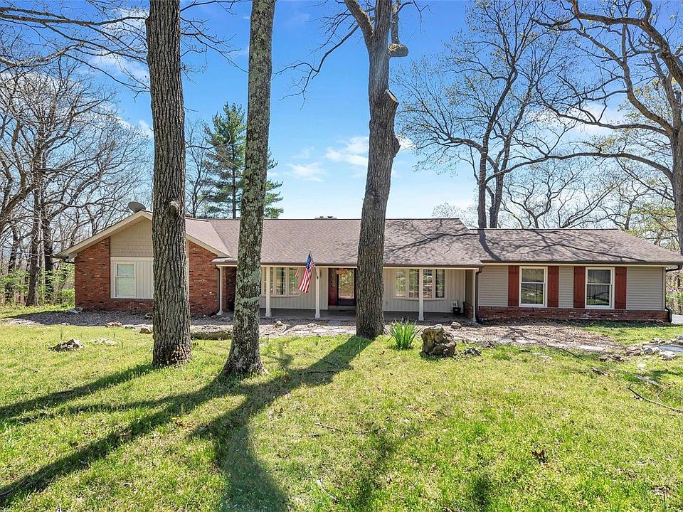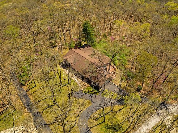 Once you visit this home and experience the panoramic views, you will simply fall in love with it. Located on a private street with some of the BEST SCENIC VIEWS in all of STL, this ranch home has 3+ bedrooms & 3.5 baths and over 2700 sq ft on the main level. The main level features a formal dining room and living room(both w/new carpeting), a master bed/bath suite with sitting room & fireplace. 2 additional bedrooms, & add. full and half bath. The large family room has a gas FP, built-in bookshelves & hardwood flooring. As you enter the kitchen & breakfast room, you will see the MOST spectacular view in Wildwood, as you proceed to the Sun Porch, the view only gets better. The LL has an additional sleeping room, full bath, large Rec room, fireplace and office area and plenty of add. storage. The roof, gutters, & siding have all been recently replaced. This private oasis sits on 4.5 acres in Rockwood School District