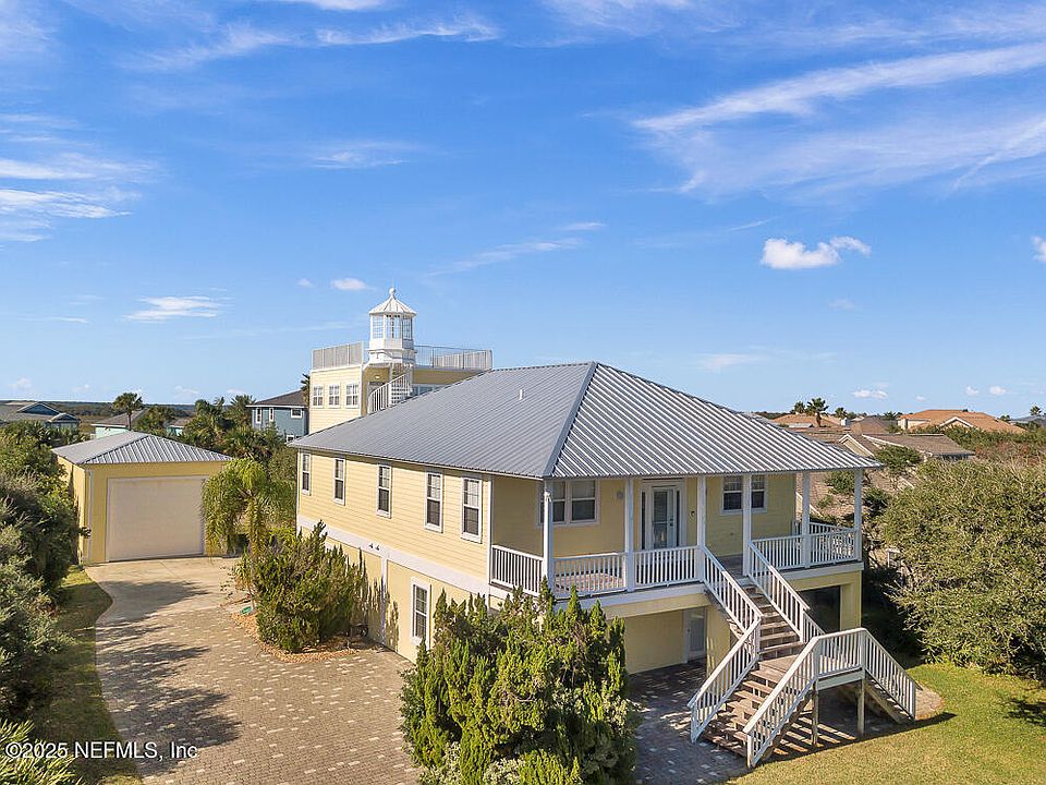 The ground level encompasses three bedrooms 2.5 bathrooms, a fully equipped kitchen, travertine floors, and a living room, showcasing upgrades throughout. Notably, it features wheelchair access and an accessible shower in the Master bathroom. Ascending to the second level reveals two or more bedrooms (one including a double bed off the primary bedroom), two bathrooms, hardwood floors, an upgraded kitchen and bar area with a beverage center, and a living room with comfortable seating. A bright sunroom leads to two expansive decks for entertaining and provides access to the unique Light Keepers Suite from the outdoor spiral staircase. This exceptional suite, measuring 22'x20', features a sixth bedroom, a full bath, a kitchenette with a beverage center, microwave, coffee maker, and is surrounded by 360-degree windows offering stunning views of the ocean and intercoastal waterway. The deck above presents breathtaking panoramas of the ocean and intercoastal waterway.