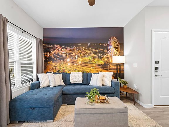 Playful paradise! Discover a turnkey short-term rental investment you'll love enjoying yourself! This well-appointed 4-bedroom, 3-bathroom condo is an established favorite among vacationers, generating reliable income while offering high-end comfort. The open-concept layout features a luxurious primary suite with a king bed, a cozy bunk room with twin bunks, and an additional guest bedroom, all on the main level. Upstairs, the game room with arcade games, foosball, and Xbox promises fun for all ages. Stylishly furnished with a Branson skyline mural and Smart TVs in most rooms, this retreat ensures comfort and entertainment. Located in the Vineyards Terrace community, you're steps away from top attractions like Silver Dollar City and Branson Landing, plus a seasonal outdoor swimming pool. This condo stands out in the Branson market with its prime location and modern interiors! Check out the 3D Virtual Tour today!