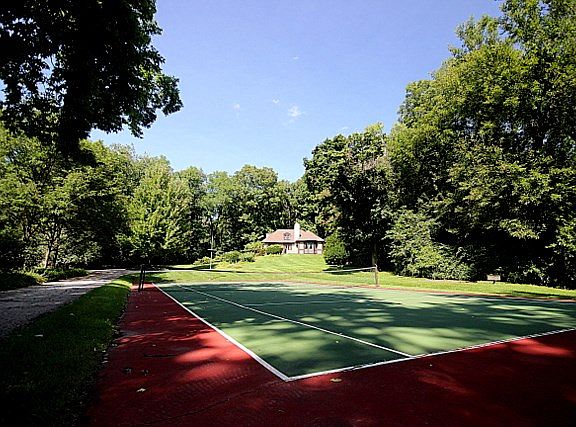 Situated high on a hill of 1.19 acres overlooking Spring Creek Road is this well maintained all brick Tudor. The drive up to the property features mature trees, rolling landscaping, circle drive, and tennis court. Entrance to the property thru the screened in porch leads you to the kitchen which features leaded glass windows, ample counter and cupboard space. Home features separate formal dining room and living room both with builtins. Main floor bath. Original hardwoods and molding thruout the main floor. Upstairs bedroom, with extra space from dormers, gives room for two builtin desk space areas. Lower level walkout with kitchen space, rec room area, and full bath. Additional room currently used as a bedroom could be an office space. New furnace in 2010. Chimney rebuild in 2015.
