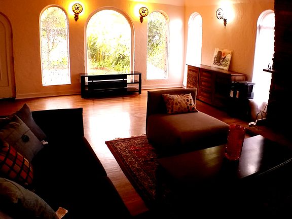 Secluded Los Feliz Shangri-La. Contemporary Mediterranean style cottage features original vast arched windows and chic modern updates. Soaring ceilings and European Oak herringbone floors create a soothing backdrop for this thoughtfully remodeled entertainer's oasis. Spacious light filled open concept living/dining and custom kitchen adorned with designer details including Smeg appliances and Calacatta marble. Tranquil master suite with spa like bath, freestanding tub + walk-in closet. Spacious 2nd bedroom and ¾ bath complete the main house. ADU/studio below with separate entrance provides ¾bath, infrared sauna + laundry; a perfect retreat for overnight guests. Sited on a generous private lot with verdant designer landscaping/hardscaping including banana/avocado trees + bocce ball court. Saltwater pool surrounded by multiple seating areas + fire pit for relaxing or gathering of friends. Close proximity to the abundant amenities of Los Feliz + Silver Lake. Recently published in Domino.