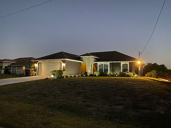 Beautifully well kept 3 bedroom + office, 2 bath, 2 car garage home. Great location in Lehigh Acres right off of Sunshine Blvd. Fast access to major roads, and only about 15 minutes from RSW airport. This home has many upgrades! - Water softener system replaced and updated February 2015. - Permanent pergola installed in back yard in September 2016. - All windows and sliding glass doors have been replaced with triple pane hurricane rated impact glass in February of 2017. - Whole house has had the stucco redone in April 2018 and now has "float" finish. - Whole house exterior freshly painted April 2018. - Mable stacked stone added to exterior entry way in May 2018. - New hot water heater installed October 2018. - Brand new air conditioning unit and air handler installed in September 2022. - Brand new in ground well pump installed April 2023. - Brand new roof installed June 2023 with added ridge vents for energy efficiency.