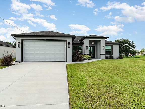 Welcome to your dream home, a brand-new construction in a prime central location in Lehigh Acres that will be completed this FALL. This home offers a perfect mix of luxury, style, and convenience, built with exceptional quality and attention to detail. It's designed for modern living and peace of mind. This spacious 3-bedroom, 2-bathroom residence features a versatile den that's perfect for a home office or cozy reading nook. The split floor plan ensures privacy, with the luxurious primary suite tucked away on one side of the home. The primary suite is a true retreat, boasting an elegant tray ceiling and two spacious walk-in closets. In the spa-like primary bathroom, you can relax in a standalone soaking tub or enjoy the sleek, frameless shower. The bathroom also features two separate sinks and vanities, along with a private water closet. The heart of the home is the chef's kitchen, which features high-end GE brand stainless steel appliances, elegant quartz countertops, and soft-close cabinetry with a beautiful tiled backsplash. This space flows seamlessly into the large great room, making it ideal for entertaining. Throughout the home, you'll find 8-foot doors, decorative lighting and fans, and stunning large tile flooring. The living room also has a tray ceiling, adding an extra touch of sophistication. Beyond the stunning interior, you'll find top-of-the-line features for comfort and security. Cat 5 Hurricane impact windows and doors provide superior protection and energy efficiency. The exterior features a beautifully landscaped yard with lawn irrigation, which you can view from the screened-in lanai. The builder even added an integrated pest control system, allowing for easy access and a pest-free home. This fantastic location puts you close to everything you need. You're just a short drive from RSW International Airport, SR-82, and I-75, making travel a breeze. Enjoy the excitement of Spring Training for the Boston Red Sox and Minnesota Twins, or explore the area's excellent shopping and dining. When you're ready for a day in the sun, the beautiful Gulf Coast beaches are not far away. This home is more than just a place to live—it's a lifestyle. Come see what makes this brand-new home so special. Check out 3715 4th St SW - #2025007300 - to see a partially professionally staged model.