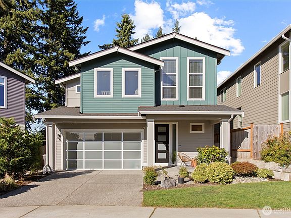 Stunning home in sought after Sires Ridge community located in peaceful, friendly neighborhood in a cul-de-sac. Excellent floor plan that remains light & airy with huge bright windows &hardwoods throughout. Chefs’ kitchen centered around large island, SS appliances, quartz countertops w/tiled backsplash, & beautiful maple cabinets. Sliders to covered patio makes entertaining effortless in fenced backyard surrounded by trees for extra privacy feel. Upstairs boasts 4 generous sized bedrooms &loft, great as multi-purpose room. Love spacious primary suite with 5-piece bath & walk in closet. Enjoy Olympic Mt Views! Cool off with A/C. Coveted Northshore School District. Perfect blend of comfort & luxury with modern finishes. Welcome Home!