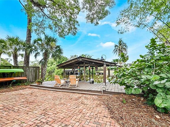 PRICED BELOW LAND VALUE...OWNER MOTIVATED, BRING OFFERS! Flood Insurance IS TRANSFERRABLE to new owner! Partial owner financing available short term! Discover a truly one-of-a-kind, income-producing Creekside bungalow tucked away in the vibrant and rapidly growing Bayshore Redevelopment District. Situated on a spacious, irregular corner canal lot along Haldeman Creek, this rare property offers a waterfront lifestyle like no other, complete with double covered boat docks, two expansive decks, and a terraced backyard that embraces the water’s edge. Inside, the home was fully renovated in 2023, featuring new flooring, updated bathrooms, a stylish kitchen, and fresh paint throughout. A new roof and gutters (2020) and a new pool pump (2023) provide peace of mind, while the owner’s suite boasts a luxurious jacuzzi tub for ultimate relaxation. The wraparound 10-foot back porch is the heart of the home, offering serene views of towering old-growth trees, swaying bamboo, playful fish, and abundant birdlife—your own private sanctuary in the heart of Naples. The location is equally impressive. Nestled in the north-central Bayshore District, you’re within walking distance to an eclectic mix of restaurants, coffee shops, yoga studios, a microbrewery, food truck park, wine venues, and live music spots, art gallery, outfitter shop and more! Outdoor enthusiasts will appreciate nearby golf, high-end social clubs, kayak and SUP rentals, world re known pickleball courts and of course, the famed Naples Botanical Garden. In late Jan, 2026, the boardwalk/bridge from Bayshore to Sugden Park will be complete, giving locals easy access to a new level of recreation! Plus, you’re just two miles from 5th Avenue and three miles from Olde Naples’ pristine beaches. With its eclectic bohemian flair—easily adaptable to a sleek mid-century modern style—this home captures the charm of Old Florida living while offering modern updates and convenience. The neighborhood is known for its warm, welcoming community, making this both a retreat and a smart investment opportunity. Join the fun community. While this home has been lovely cared for and remodeled interiorly, it still needs some TLC, hence the tremendously low pricing for this charming ole' Florida home in a sanctuary setting! Must see to appreciate!