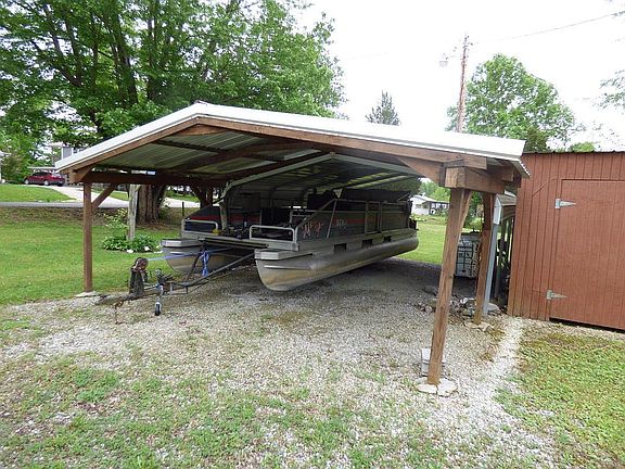 Nolin Lake vacation home. This property is located on Nolin Lake within walking distance to the water and 10 minutes from Wax Marina! This 1 Bedroom, 1 bathroom home is perfect for summer and weekend get-a-ways. The covered front porch leads you into the eat-in kitchen where all appliances remain along with a deep freezer and washer & dryer. The family room is spacious and open, plenty big enough for a large family to enjoy. The outside features a shed and a metal building that both have electric. In addition to the house there is a single wide trailer on the property that has central air and electric heat. The trailer has 2 bedrooms and 1 bathroom. The pontoon boat and trailer also remain! The boat runs great and the seller has already paid for the tags for 2016. All this for