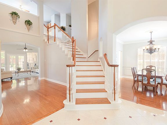 Meticulously maintained 4-bedroom, 3.5-bath home in a highly desired neighborhood. From the moment you arrive, pride of ownership is evident with beautifully landscaped grounds and mature shade trees. Step inside to an open floor plan featuring a dramatic entry with a winding staircase and soaring ceilings that create a grand first impression. The home office offers built-ins, rich wood flooring, and a ceiling fan, while the elegant dining room is highlighted by crown molding, chair rail detail, and plantation shutters. The updated gourmet kitchen is a chef’s delight with striking granite countertops, farmhouse sink, white cabinetry, designer tile flooring, walk-in pantry, and a built-in desk. The secluded master suite, tucked away downstairs, features a bay window overlooking the sparkling pool, wood flooring, and a spa-inspired bath with updated tile, jetted tub, separate shower, and a spacious walk-in closet. Upstairs, you’ll find a large game room perfect for family entertainment, plus three generously sized bedrooms. One bedroom includes a private bath, while the other two share a Jack-and-Jill layout. Step outside to your backyard retreat—complete with a large covered patio and a refreshing pool. An electric gate opens up the backyard, creating even more space for entertaining.
