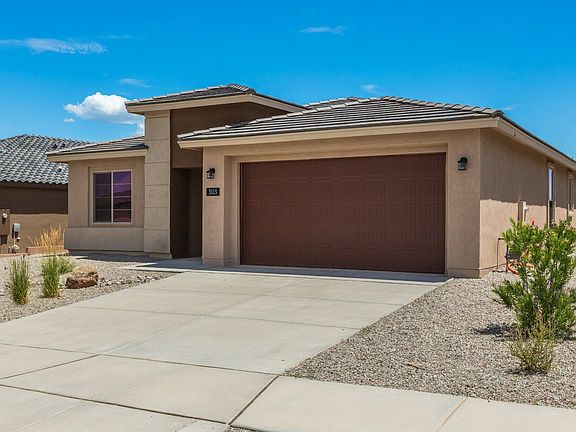 Ready Now! The elegant Gateway home is located in the highly sought-after Broadmoor Heights Peak community in Rio Rancho. This charming neighborhood features a 3-acre park, walking and biking trails, a basketball court, playground equipment, and is in Rio Rancho's top school district. This stunning single-story home boasts KitchenAid appliances, Birch Sarsaparilla cabinet stain, and Miami Vena Quartz countertops. A large kitchen island provides plenty of space for entertaining. Modern 12x24 tile flooring spans all areas except the bedrooms, which are fitted with plush carpet and 1/2'' 8lb padding for extra comfort. With its modern front exterior, this home offers beautiful curb appeal!