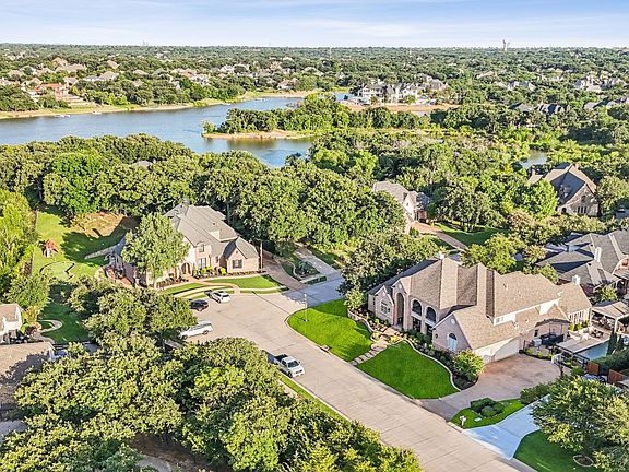 This exquisite estate in the highly sought-after community of Highland Shores is a true standout, offering elegant curb appeal with manicured landscaping, a charming front porch, and an upper-level balcony perfect for morning coffee or evening relaxation. A grand foyer with soaring ceilings, a statement chandelier, and gleaming hardwood floors sets the tone for the sophisticated design throughout. Just off the entry, a spacious private study provides the perfect work-from-home retreat, while the formal living room impresses with double-height windows, a grand fireplace, and an abundance of natural light. The formal dining room is designed to host elevated dinner parties with grace and style. At the heart of the home, the gourmet chef’s kitchen features granite countertops, a raised breakfast bar, center island, stainless steel appliances including a wine fridge, and a built-in planning station in the sunny breakfast nook. The adjacent family room offers vaulted ceilings, a second fireplace, and custom built-ins, creating an inviting space for everyday living and entertaining. The luxurious primary suite is a peaceful haven with a private sitting area and a spa-like bath showcasing dual vanities, jetted tub, separate shower, framed mirrors, and a generous walk-in closet. One of the home’s most unique features is the expansive in-law suite, complete with a full second kitchen, spacious living area, and private bedroom suite—ideal for multi-generational living or long-term guests. Upstairs, a large balcony provides a stunning outdoor entertaining space, while the backyard is a true sanctuary, featuring a resort-style pool and spa, mature trees for privacy, and a wraparound lawn that feels like a private park. A well-appointed utility room with built-ins and sink, generous guest bedrooms, and thoughtful finishes throughout complete this exceptional home—offering both elegance and functionality in one of the area’s most prestigious neighborhoods.