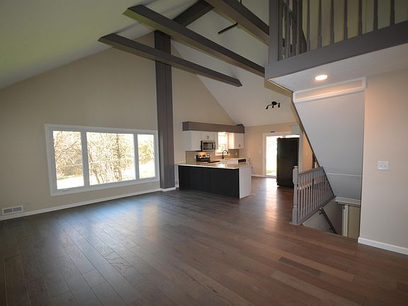 Renovated 1½ Story Home with Vaulted Ceilings & Walkout Basement Completely renovated and move-in ready, this 1½-story home combines classic charm with modern updates. The vaulted ceilings in the living room and the brand-new kitchen create an open, spacious feel that’s perfect for today’s lifestyle. Enjoy new flooring throughout, two beautifully updated main-floor bathrooms, replacement windows, new siding, exterior doors, and fresh landscaping that enhances the home’s curb appeal. The open stairway leads to a private second-floor bedroom, while the walkout basement features a huge rec room—ideal for entertaining, a home theater, or a game area plus bedroom and half bath / laundry room. Step outside to a private backyard that backs up to the green space of a former golf course, offering a peaceful and scenic setting. A covered front entry adds to the home’s classic character and welcoming charm.