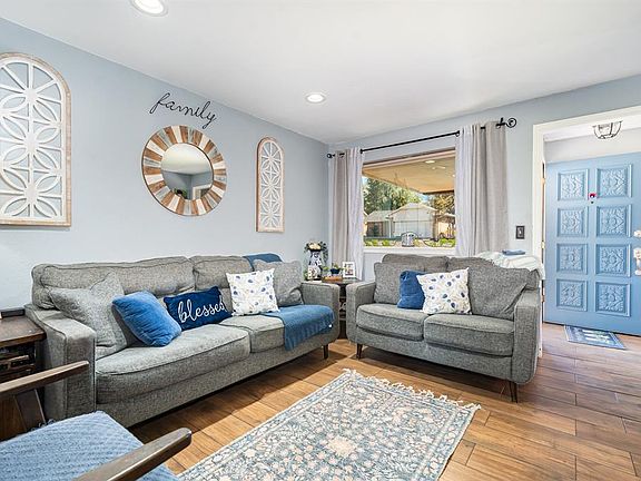 The flexible layout includes 4 bedrooms, 1.5 baths, and 2 living areas with the secondary living room offering a cozy gas fireplace or optional flex space.