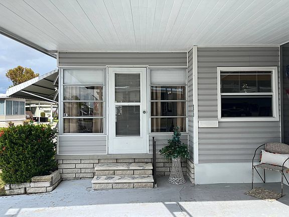 Well tended home in desirable Amber Glades offers a pleasing layout with open Eat-In Kitchen, large Living Room offering many options for furniture placement, a 200 Sq Ft Enclosed Porch for use as an art studio, den and/or Dining Area, and a large Screened Porch with shed. Main Bedroom is large enough for King furnishings and offers two double closets and an En-Suite Bath with a walk-in shower. Guest Bedroom offers a triple closet and built-in dresser, large enough for Queen furnishings. Large Hall Bath offers large vanity, full tub/shower, and lots of additional storage. New vapor barrier 2022. New H/W heater 2023. Active pest control to keep the bugs at bay. Neat and tidy throughout. Come take a look! Monthly fee of $945 includes lot rent, water & sewer, lawn service, and 2x weekly trash collection. Allowed 1 dog under 40lbs. Amber Glades is a gated 55+ community offering year-round activities and a host of amenities: swimming pool, jacuzzi, gym, clubhouse w/kitchen and wi-fi, pickle ball & shuffleboard courts, billiards, putting green, horseshoe pit, library, laundry room, ice machine, pond and island gazebo w/ fire pit. Must be approved by Amber Glades Management via background and credit check. Non-mandatory HOA fee $15.00/year. Information contained herein is deemed reliable but not guaranteed. Sun Realty cannot guarantee or warrant the accuracy of this information or condition of any property. Buyer to confirm park rent, fees, rules and requirements. Home and pest inspections are always recommended.
