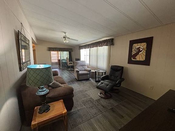 This 2 bedroom, 2 bathroom split floorplan is ideal for family visits and guests. This home features an island kitchen with stove top on the island, double wall oven, refrigerator all stainless steel appliances. Inside laundry area with stackable washer/dryer. Nice size guest bedroom, sunroom with separate a/c which is great for entertaining. Separate dining room with lighted coffee bar, living room, large master bedroom and ensuite to include garden tub/shower, separate shower, double sink vanity, walk in closet. A/C is 6 years old, roof over, vinyl side, driveway will accommodate at least 2 cars, separate shed. New double sliding door with built in blinds. This home is furnished and move in ready! Call us today to schedule your personal tour of this home and community. We look forward to hearing from you. Discover, Visa, Mastercard and AMEX are now accepted at this location, some restrictions apply. Contact the sales office for details. Price is subject to change without notice. Qualified buyers may receive financing thru 3rd party lenders.