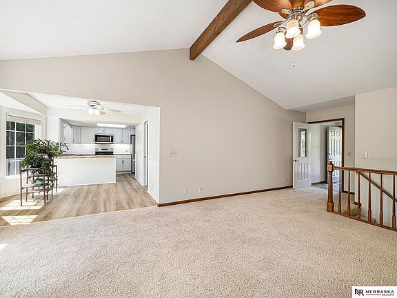 PRE-INSPECTED! Freshly painted inside and out with a 1-yr-young roof, this ranch is ready for you! Step into the beamed and vaulted, sun-filled great room with a cozy wood-burning stove. The recently updated ('22) open kitchen shines with stainless appliances, under cabinet lighting and generous counter space, while main floor laundry adds everyday ease. Triple-pane windows and a new split-view storm door boost comfort and efficiency. Downstairs offers a 4th non-conforming BR/flex space, 3/4 bath, tons of storage, shop area, and a mini kitchenette with potential to fully finish the entire space as you like. All this plus a location that checks every box—close to an elementary school, park with playground, bike trail access, Offutt AFB, and quick routes to Hwy 370 & 75. A squeaky-clean, lovingly-maintained home in a quiet neighborhood on a low-traffic street that’s both move-in ready and full of possibilities! Schedule your tour today!