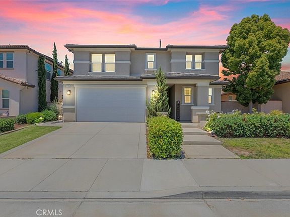 Popular floorplan located in the gated community of Roripaugh Ranch offering over 2,800 sq. ft. with 3 bedrooms + a flex space/office downstairs that can be used as a bedroom, 2.5 baths, and a spacious loft. The open-concept layout downstairs features a large kitchen, dining area, and great room—ideal for entertaining. A 16-foot bifold door expands the great room into the covered California Room, blending indoor/outdoor living. The kitchen is upgraded with shaker cabinetry, quartz counters, subway tile backsplash, and stainless steel appliances.