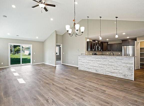 New Construction 4 plex to be completed Late July into Aug. Main level living, vaulted ceilings, stainless steel appliances, granite counters and all vanity tops. Beautiful pond view on new boulder retaining wall.