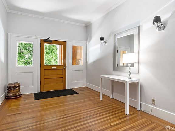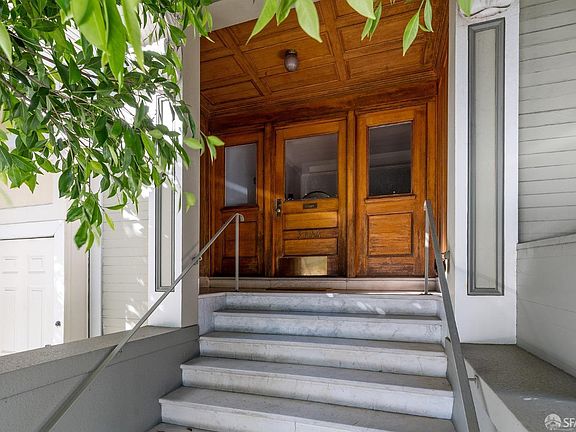 Just high enough above one of the Clay Slow Street's most exclusive blocks to see above the trees, sun streams through the south facing bay windows into 3114 Clay #5. Views to both the east and west invite you to enjoy the large windows. This top floor home features Edwardian details, such as gracious period light fixtures, coved ceilings, pocket doors and a claw-foot tub. A remodeled kitchen with hip green granite counters and freshly painted cabinets awaits your creative cookery while friends await in the adjacent dining area or spacious living room. The living room features built in book cases, a charming decorative fireplace and pocket doors that can provide privacy if it's used as an extra space for guests. The large front bedroom has a built in window seat where you can enjoy a book or the view and two spacious closets. The 2nd bedroom accommodates a full sized bed, or can be used as an office. Many closets and built ins make gracious living easy. The large bathroom, with charming hexagonal tile floor has been refreshed with a new lighting and vanity top. It also has a full height linen press/storage cabinet & shower over soaking tub. The building features a welcoming lobby and shared laundry room and also completed the required seismic retrofitting in 2020.