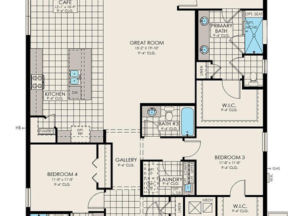 This Madison is a four bedroom three bathroom home. The expansive open floor plan with a great room, café and gourmet kitchen provide easy options for entertaining. This home features a patio extension with screen enclosure, water view and more.