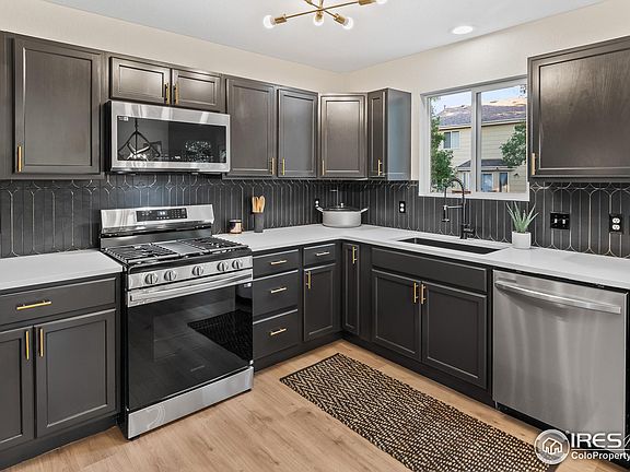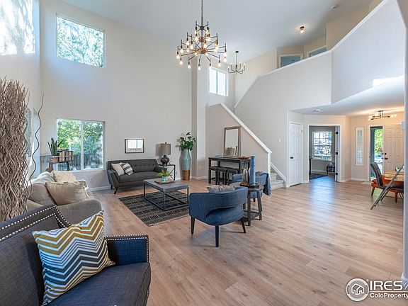 This from model home has been fully redone and upgraded and is a STUNNER! Ths two-story home, located on a serene cul-de-sac with mature landscape and front porch mountain views, offers a spacious and inviting place to call home. Featuring 3 bedrooms PLUS a dedicated office, this home full of windows and lights boasts an expansive open floor plan and a grand living room with a soaring cathedral ceiling, accentuated by elegant light fixtures throughout. The stunning kitchen is equipped with new cabinetry, quartz countertops, and a custom tile backsplash, while all bathrooms have been updated with quartz countertops, vanities and beautiful custom tile showers. The master suite is a true retreat with a large room, walk in closet and dedicated bathroom with tiled shower and a custom sleek glass shower enclosure. Step outside to enjoy the privacy of a fully fenced backyard with tons of huge trees. There is a Trex-style deck and iron railing nestled into the lot, perfect for outdoor gatherings. The front porch offers a relaxing spot to take in breathtaking mountain views. The list of new items is long and includes all new paint inside and out, flooring, lighting, cabinets, vanities, quartz counters throughout, custom tile, custom shower and glass enclosure, class 4 impact resistant roof with transferable warranty, sliding glass door, recently serviced HVAC and so much more. This home is A DIAMOND IN THE ROUGH, blending modern upgrades with timeless elegance and it's one you don't want to miss!