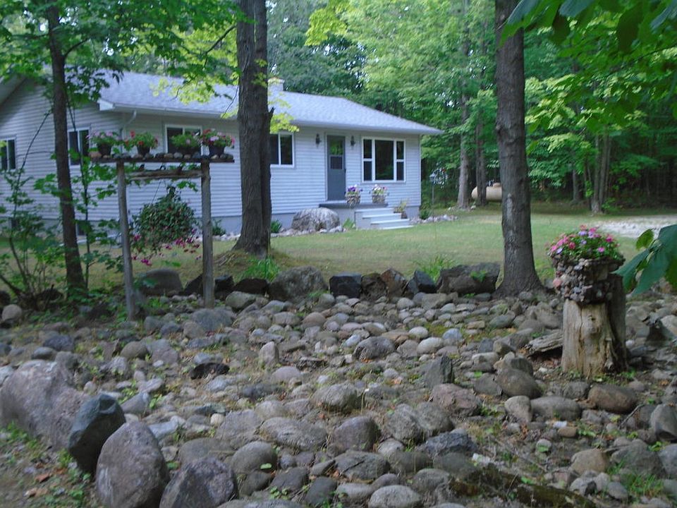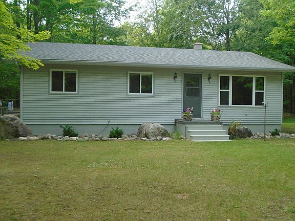 House is on five acres and just outside of city limits. House is set back from the road and trees surround it on all sides. Open kitchen/living room concept with three bedrooms and a full bathroom on the main level. Finished basement has a den room that is currently used as a bedroom with closet space. Basement has a spacious family room area and a full bathroom. There is also a large laundry/storage room. New drain field in 2014, ejector pump in 2016, new roof in 2008, new efficient furnace in 2010, central air conditioning, new windows in 2008 and 2012, seamless gutters. The garage has an attached lean tough. There is a pole barn next to the garage for up to five car parking space and plenty of extra space for storage. Natural gas pipeline is available and runs in front of house.