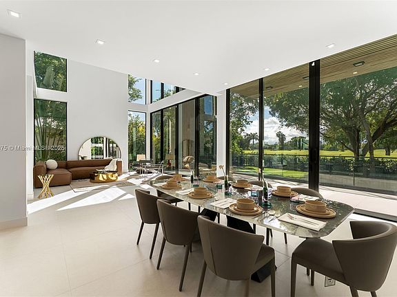 Situated on the Miami Beach Golf Course, this brand-new home is truly one of a kind. The open layout features floor to ceiling windows, dual living spaces, a dining area, and wet bar connecting to a custom MiaCucina kitchen with double ovens, large pantry, and wine fridge. An office with ensuite bath on the main level offers flexibility as a guest suite. Upstairs, the primary suite includes custom closets, private balcony, and spa-style bath with dual vanities, tub, and shower. Three additional bedrooms are generously sized & a rooftop green space provides the perfect setting to enjoy sunset views. Outside, a summer kitchen, pool, and hot tub overlook the fairways. The 500 SF garage and wide driveway offer ample parking and storage. Move-in ready and close to the best of Miami Beach!