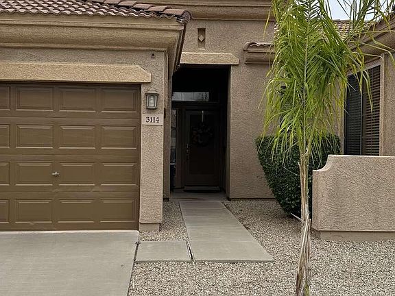 This is a Must See! This sunny bright and open split floor plan home is on an oversized corner lot. Large living room is lined with windows that look out to the beautiful pool area. Kitchen features an island and a walk in pantry. Space for a dining table as well as island seating. Both bathrooms have double sinks and commode closets for privacy. Master bathroom has stand alone shower and tub. Outside you will find your own oasis. Large covered patio with ceiling fan looks over a sparkling Pebble Tech Play Pool with a waterfall. Side yard is home to a small citrus grove. Many upgrades have been done to the house. Two new air conditioners, new water heater, new pool pump and vacuum, paint throughout, new carpet in major living areas.