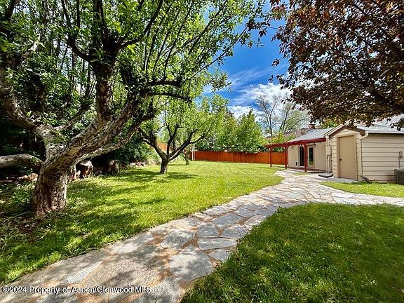 This unique property offers a beautifully updated 3Bdr/3Ba home (1 Bdr/1 ba separate from the primary home) that sits on 0.3 acres at the end of a cul-de-sac with access to the Rio Grande trail. The home has hardwood floors throughout, heated slate kitchen floor, custom cherry kitchen cabinets and granite countertops, central A/C, forced heat, smart home monitoring systems, and an underground sprinkler/drip system. The property boasts an assortment of mature fruit trees including apple, pear, plum and apricot trees, Pex decking with Pergola, a fenced backyard, a detached 3 car garage and many more bonuses! NO HOA and a room with separate kitchen and bath make this a perfect property for anyone to enjoy all of the beauty that Glenwood Springs has to offer! Welcome home!