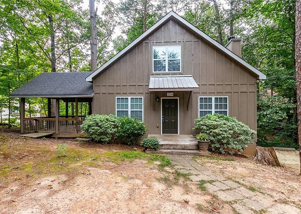 Move-in ready gem in "A Quiet Place in the Woods," right on Lake Lanier - could be primary or secondary home! Built in 2014, the main level great room, eat-in area, and kitchen are all open to each other. Wonderful 16' x 16' covered side deck/porch is THE place to enjoy morning coffee and evening beverages! HVAC replaced 1 year ago. Large walk-in cellar/crawl space provides excellent access and plenty of storage. Gorgeous LVP floors on main level; stone fireplace; nice two-tone cabinets in kitchen, along with granite countertops and island; insulated windows; large laundry room on main level. One BR & BA on main, two BR & full BA up - excellent roommate plan. Neighborhood is gated but very laid back, and includes public water & sewer, boat docks, boat storage, clubhouse, pool, tennis courts, street lights, and more. Easy living!