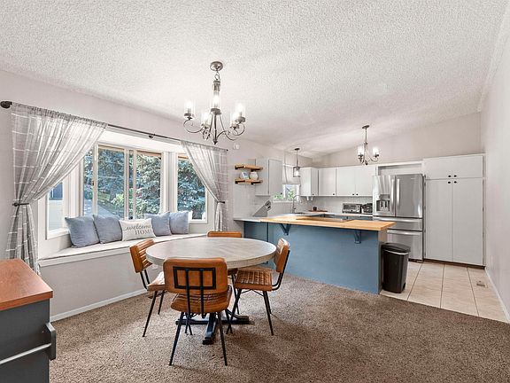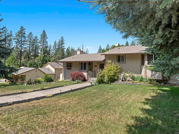 Located in a peaceful, treed neighborhood in Hutton school district just minutes from downtown Spokane, Fairchild AFB, and shopping, this updated 4-bed, 3-bath home is move-in ready. Set on 1/3 of an acre, the spacious backyard includes two decks, a large patio, and a firepit—perfect for outdoor living. The kitchen offers stainless steel appliances, a pantry, and a bay-windowed dining area. Vaulted ceilings, floor-to-ceiling windows, and a gas fireplace enhance the living room, with a slider leading to the upper deck. Upstairs features three bedrooms, including the primary suite with double closets and a ¾ bath with large shower. The lower-level family room includes laminate flooring, a gas stove, and walk-out access to the patio and yard. Newer furnace (2022) and central A/C. Just around the corner from Grandview Park with splash pad and playground.