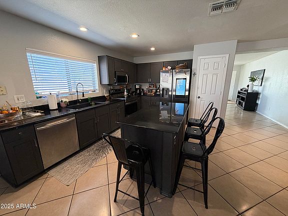 Spacious 3-bedroom plus den, 2-bath home with 2,167 sq ft of single-level living. The open layout includes a large kitchen with granite counters, Samsung stainless steel smart refrigerator and stove, a huge pantry, and an island that opens up to an oversized family room. Features neutral tile in main areas and a formal living/dining space perfect for gatherings. The primary suite offers a walk-in closet, double sinks, and a separate tub and shower. Also features inside laundry, a covered patio, pool, and water filtration system. Conveniently located near the I-17, quality schools, hiking trails, and shopping.