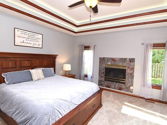 - Breakfast Bar, Ceiling-9+, Tray Ceiling(s), Ceiling Fan(s), Central Vacuum, Countertops-Solid Surf, Crown Molding, Kitchen Island, Open Floorplan, Stand Up Shower, Main Level Bedroom Suite, Formal Dining Room, Custom Cabinetry