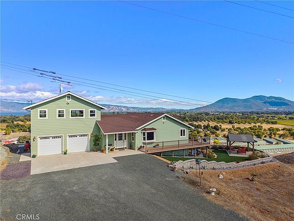 Welcome to this high efficiency two-story single-family residence set on 6.7 acres, offering space, privacy, and beautiful natural surroundings. The main level opens with a formal entry featuring neutral tile flooring, a coat closet, and a convenient laundry closet. From there, the home transitions into a formal dining area with pastoral views filtering in through picture windows. A bright open-concept living and kitchen area with hardwood floors, a great wood burning stove to keep you cozy during the winter. Plus a full bathroom with shower over tub, and access to a wraparound deck showcasing sweeping views of Lakeport, Mount Konocti and the Mayacama Mountains. A guest bedroom is also located on this level, offering direct deck access and incredible sunrise views over the lake and surrounding hills.